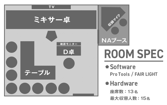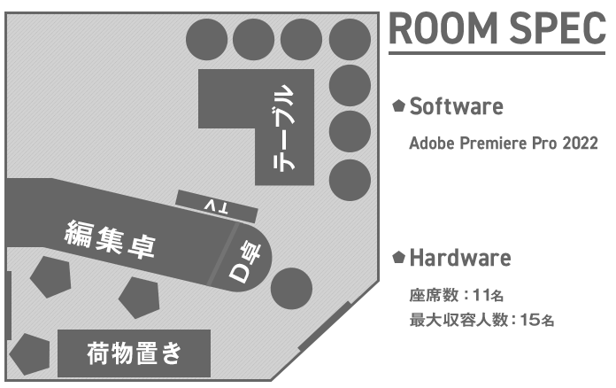 B&M最大級の広さを誇るこの部屋は、大人数のお客様が来ても心配する必要がありません。 ディレクター卓も広々としており、PCや資料を思いのままに広げることができます。 お客様の要望に合わせて3人以上での作業を行うのにも十分なスペースがあり お客様のアイデアやチャレンジをより早く反映させることができます。