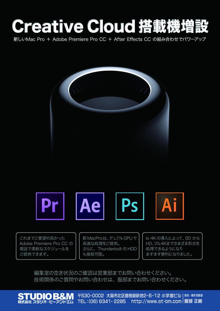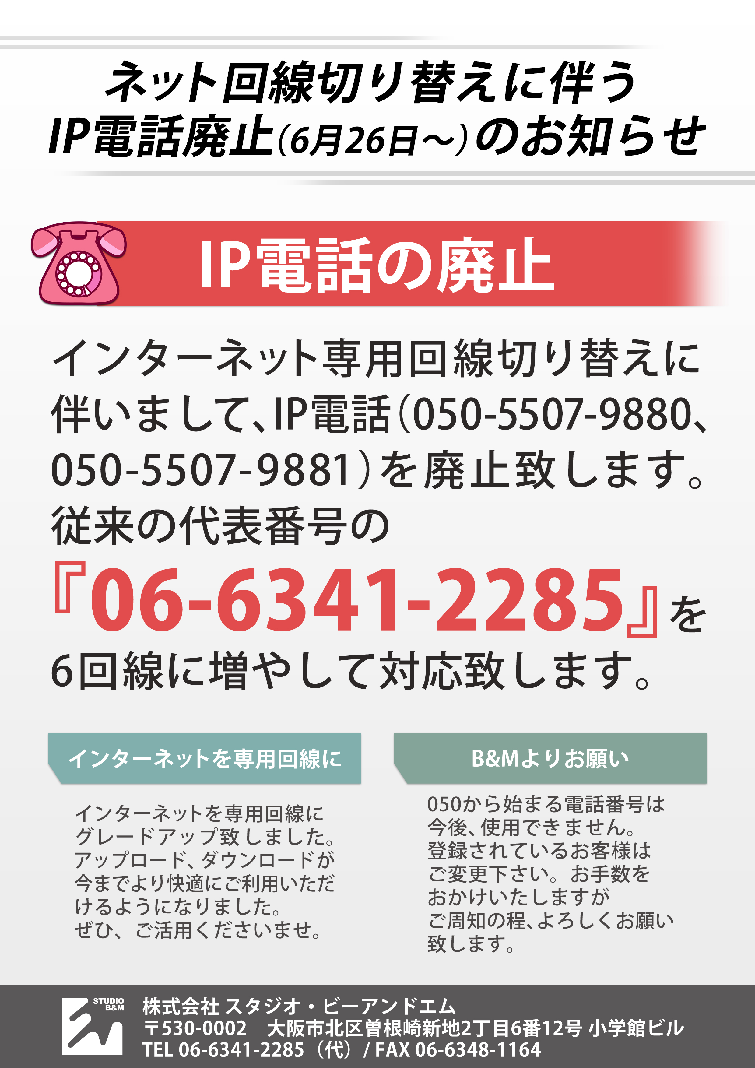 今後とも、益々パワーアップする、スタジオ・ビーアンドエムを、よろしくお願いします。