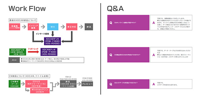 XDCAM納品やファイル送稿に対応した弊社のワークフローについて説明を追加しました。