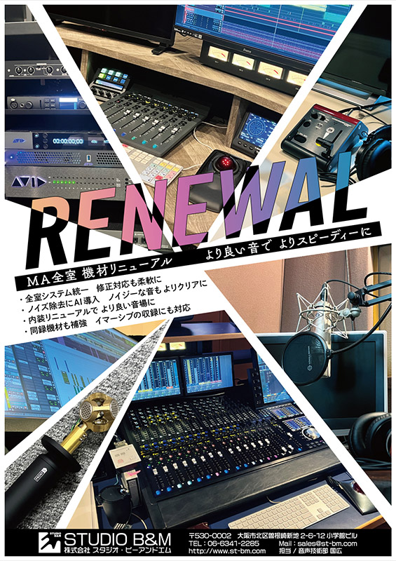 今後ともスタジオ・ビーアンドエム音声技術部をよろしくお願いいたします。