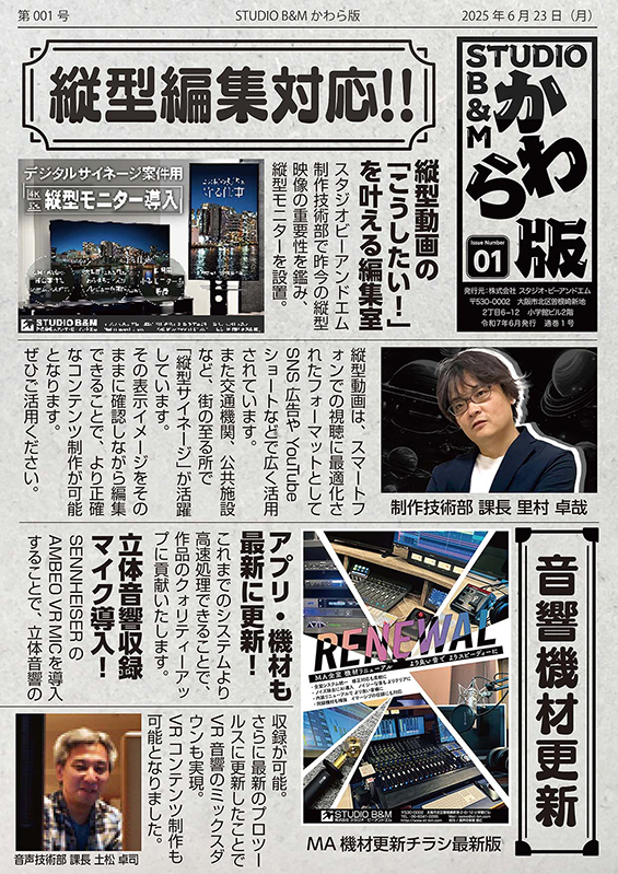 隔月でお届けできるように『STUDIO B&M かわら版』を発行することになりました。